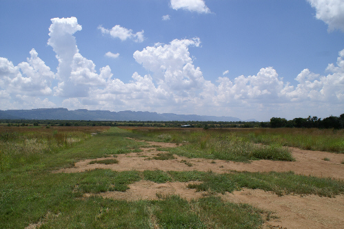 View down the Runway with cottage and hangars 600m away.