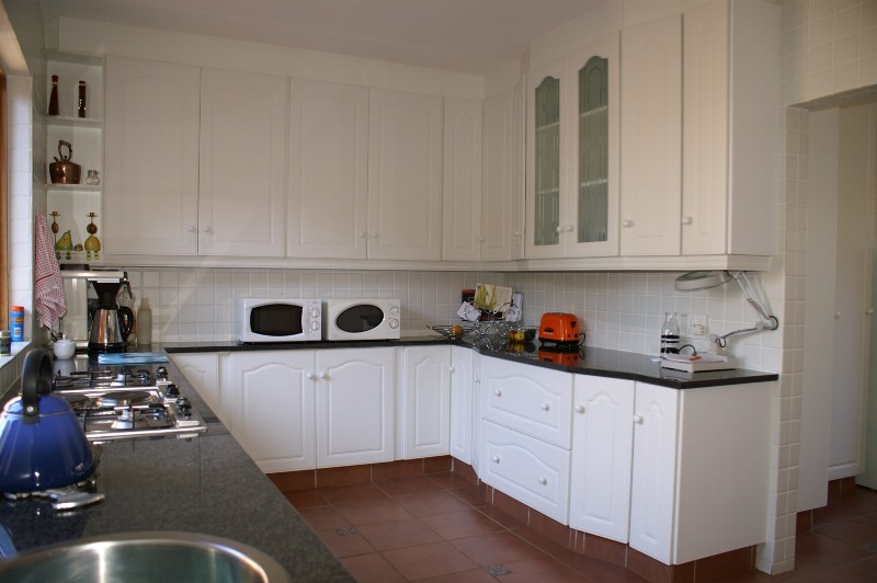 The pristine eat-in kitchen has a gas and electric hob, an eye level electric oven and loads of cupboard space.